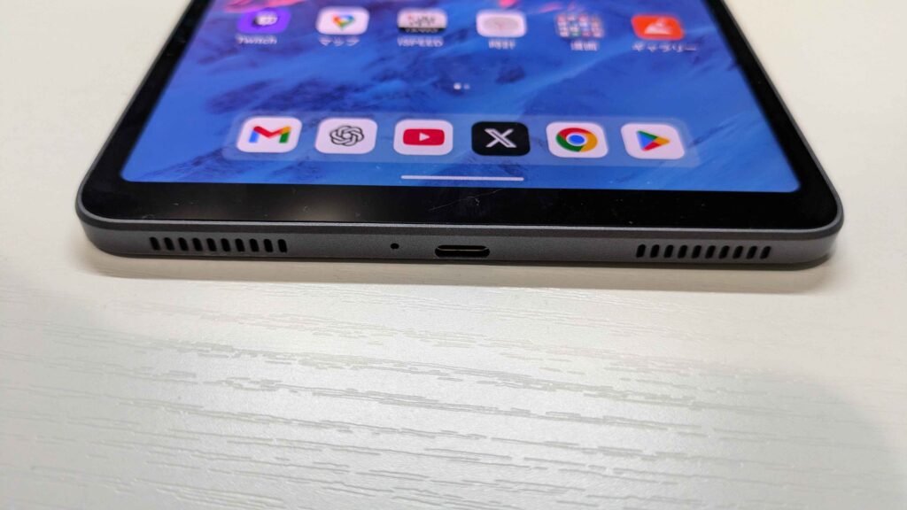 他の方のレビューでも「こもってる」「迫力がない」と酷評されることが多く、動画視聴やゲームを本気で楽しむならイヤホンや外部スピーカーは必須レベルです。なお、3.5mmのイヤホンジャックは非搭載なので注意。