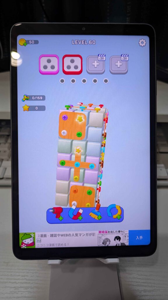 ただし、原神レベルの3Dゲームは設定を下げてもかなり厳しいです。プレイできるのはせいぜい2Dゲームまでで、パズルゲーやRPGなんかはギリOK。ゲーム目的であれば他のタブレットを選ぶのが無難です。