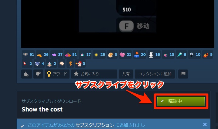 - 導入したいMODのページを開き、「サブスクライブ」を押して「購読中」にする