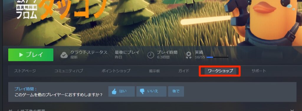 ダッコフはSteamワークショップに対応しているので、管理ツールやフォルダを弄る必要はなく、ワンクリックで導入できます。