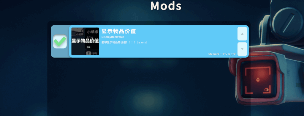 - ゲームを起動し、タイトル画面にある「Mods」のボタンを押して、先程サブスクライブしたMODにチェックを入れる